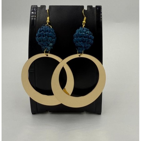 Boucle d'oreille fantaisie, fait main à base de raphia de Madagascar.